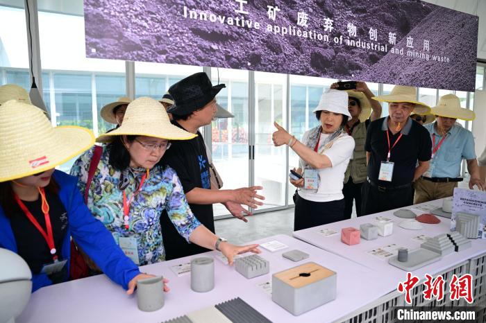 海外华文媒体代表参观灯塔广场工矿废弃物创新应用项目。刘康摄
