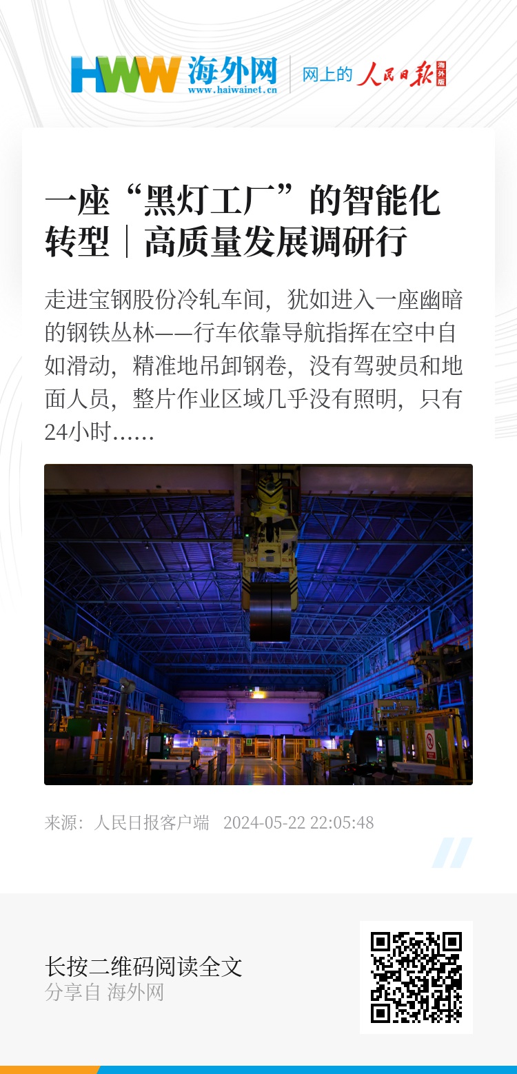 宝钢股份“黑灯工厂”。刘继鸣摄