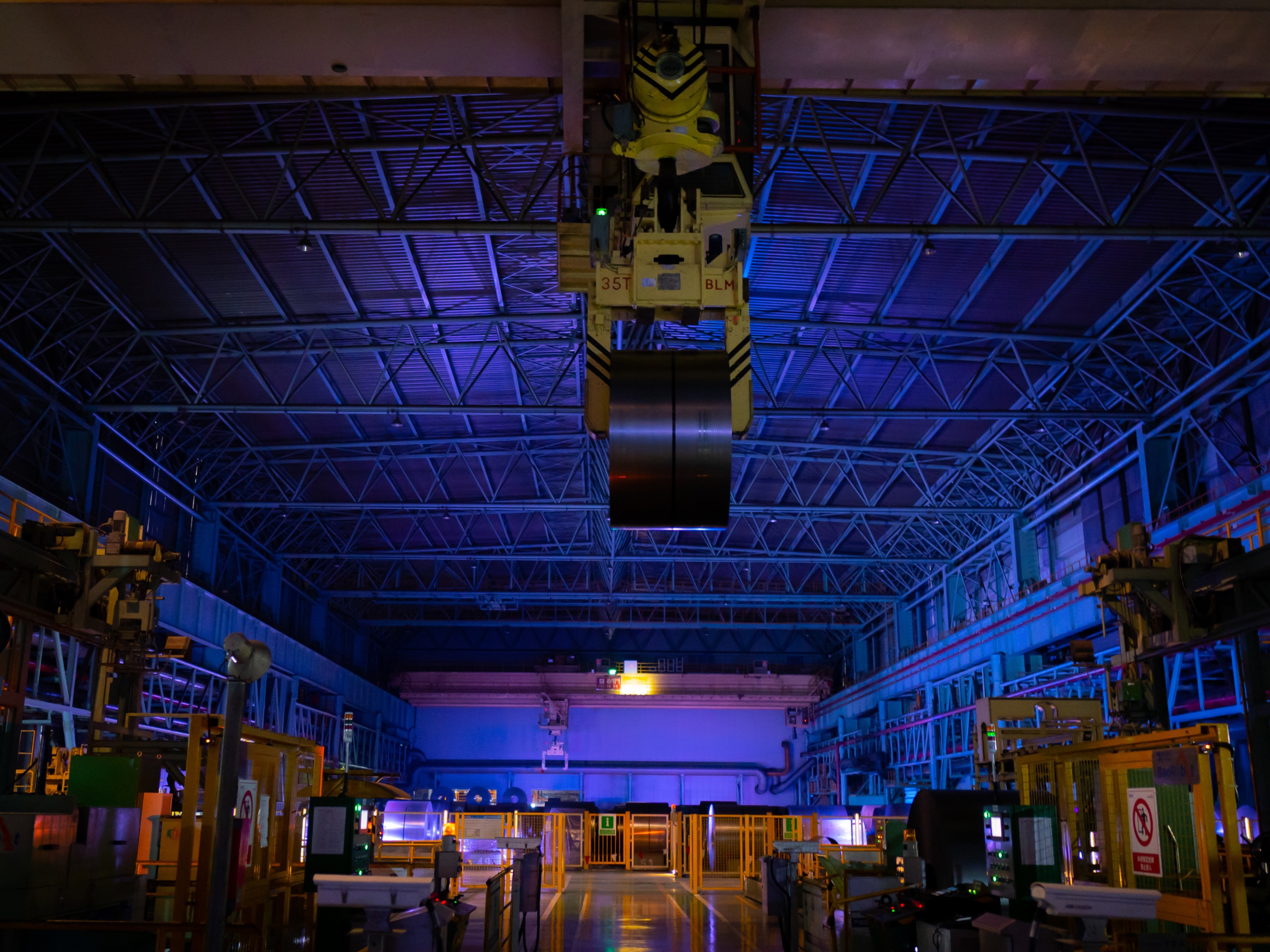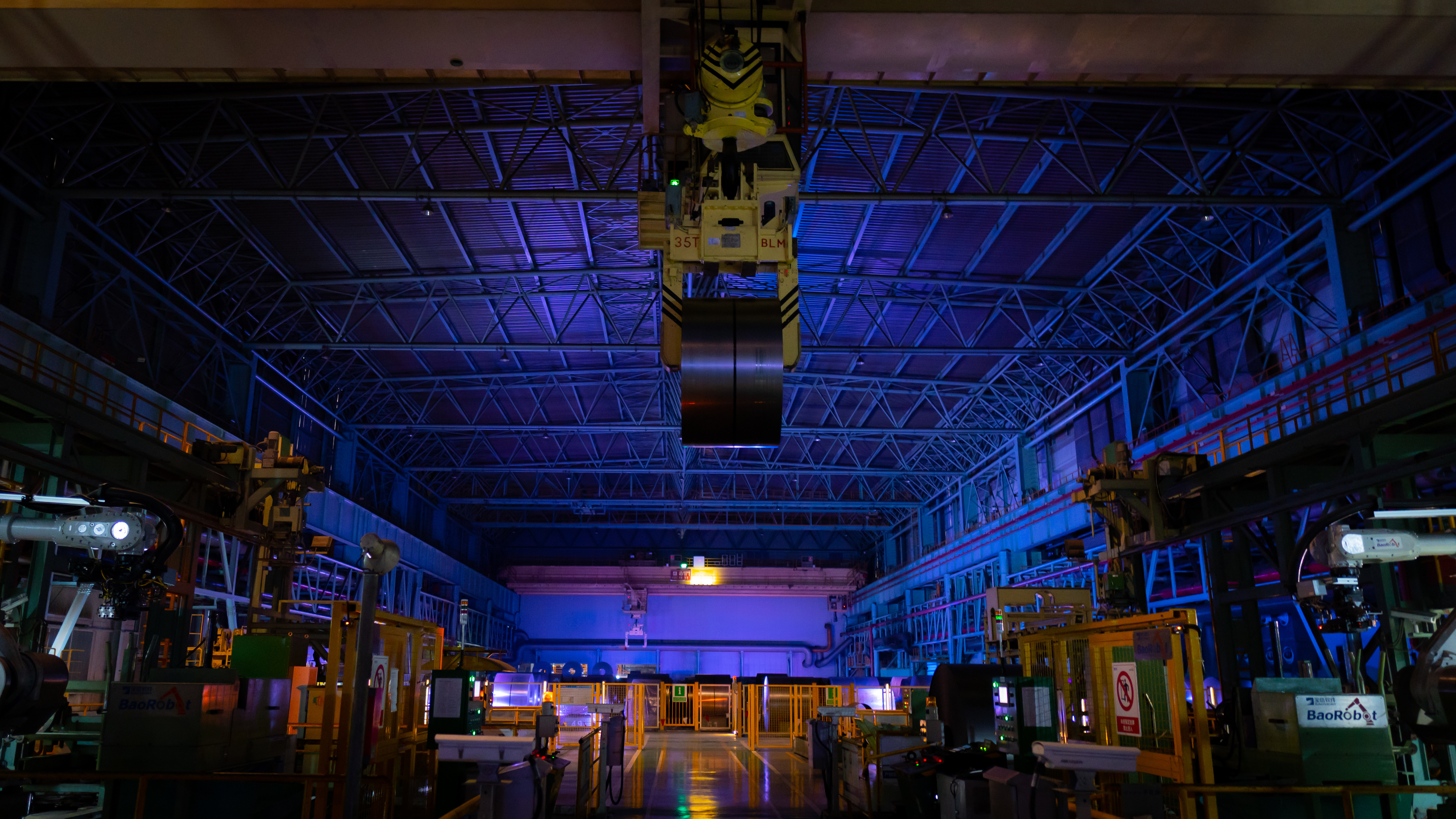 走进宝钢股份冷轧车间,犹如进入一座幽暗的钢铁丛林——行车依靠导航指挥在空中自如滑动,精准地吊卸钢卷,没有驾驶员和地面人员,整片作业区域几乎没有照明,只有24小时“在岗”的机器人和机器繁忙作业的轰鸣声。