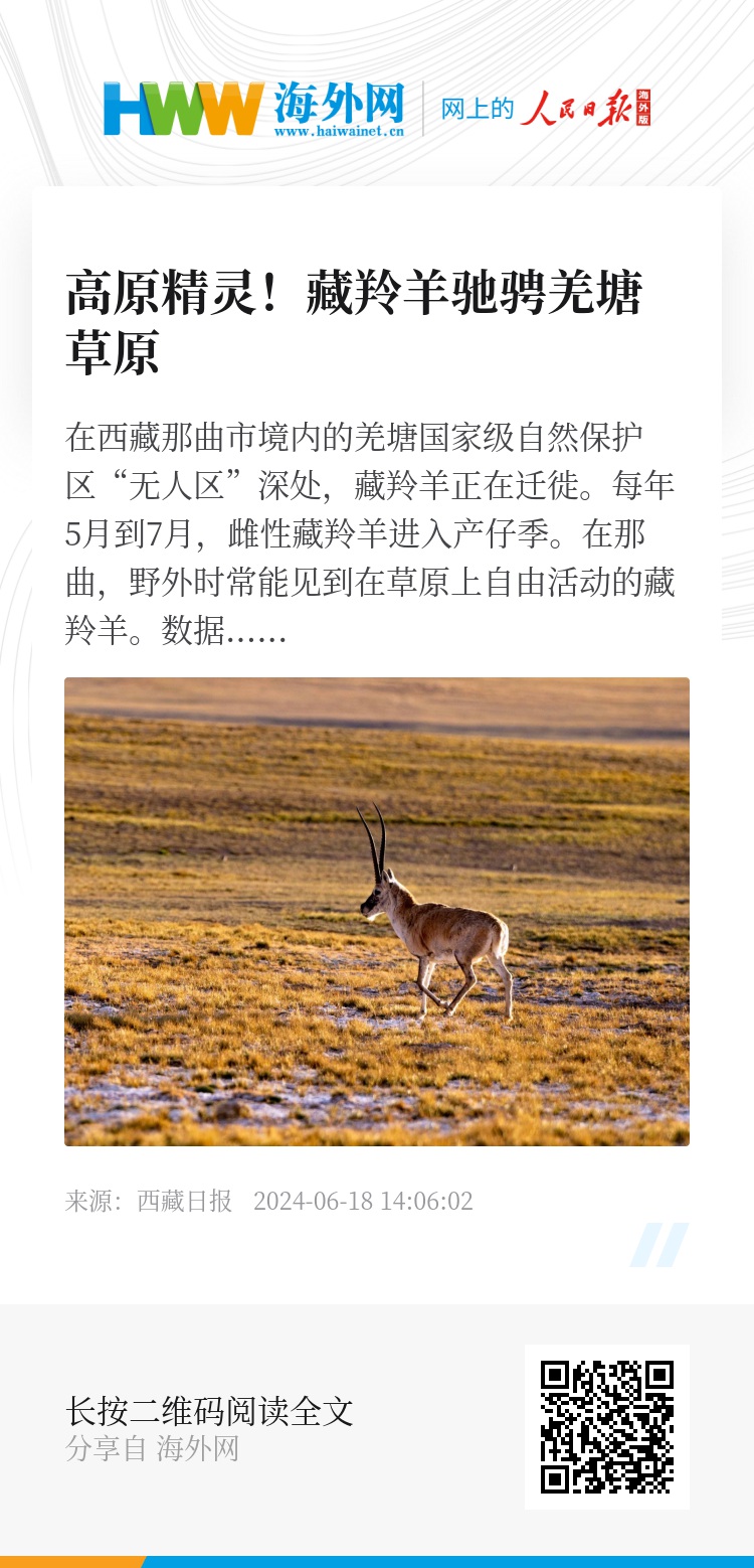 在西藏那曲市境内的羌塘国家级自然保护区“无人区”深处,藏羚羊正在迁徙。每年5月到7月,雌性藏羚羊进入产仔季。在那曲,野外时常能见到在草原上自由活动的藏羚羊。数据显示,近年来西藏重要物种野外种群数量恢复成效明显,藏羚羊数量增长到30多万只。