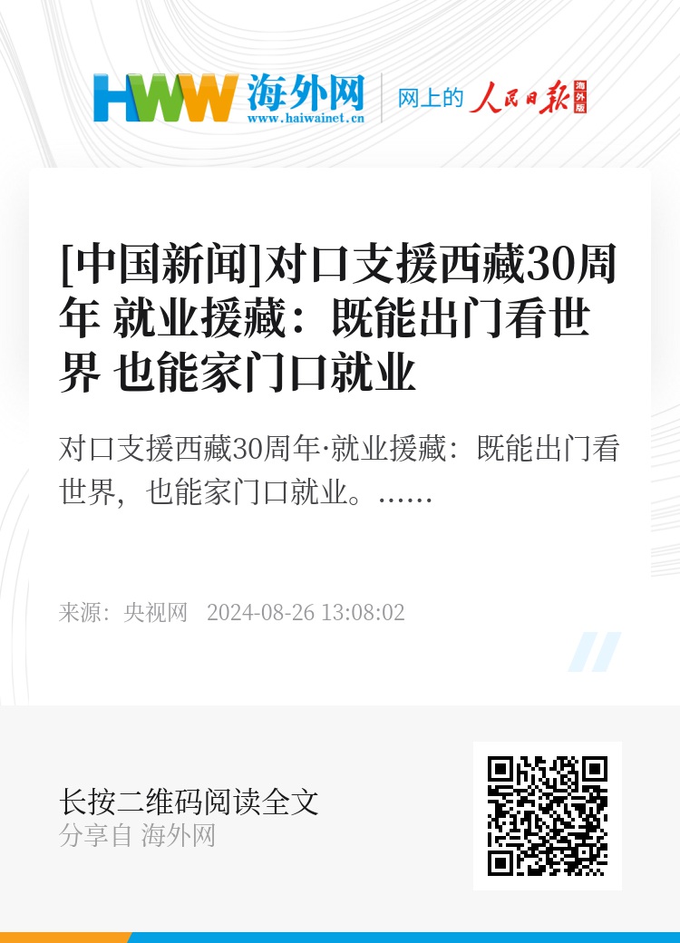 [中国新闻]对口支援西藏30周年 就业援藏:既能出门看世界 也能家门口就业