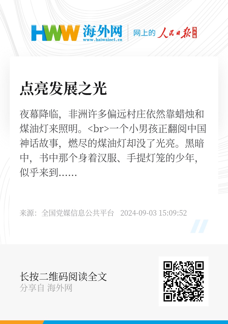 10多年来,在习近平主席提出的真实亲诚对非政策理念和正确义利观引领下,一批重大标志性工程项目和“小而美”民生项目落地生根,不仅点亮了小男孩的家,也连接起中非人民的梦想和希望。