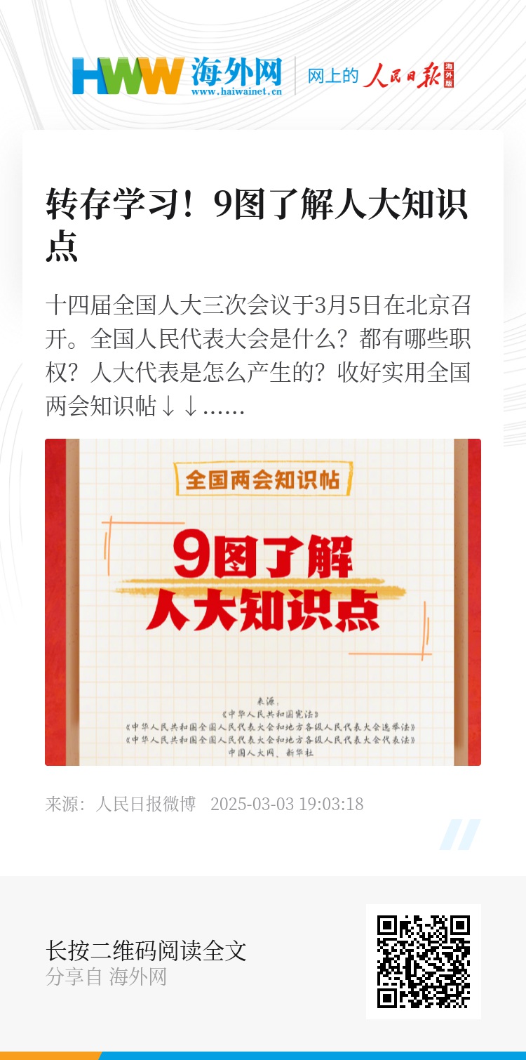 十四届全国人大三次会议于3月5日在北京召开。全国人民代表大会是什么?都有哪些职权?人大代表是怎么产生的?收好实用全国两会知识帖↓↓