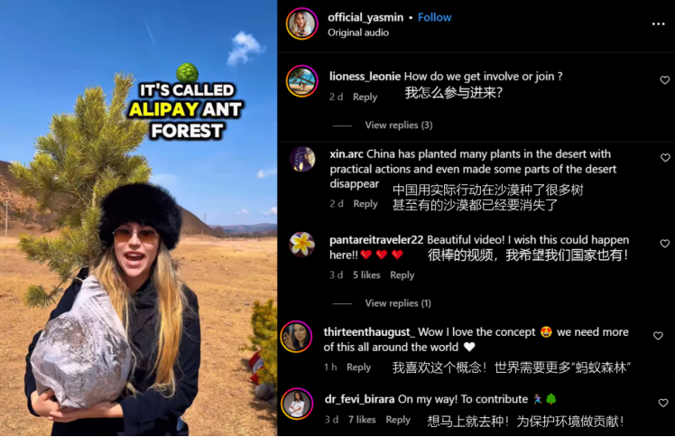 “前人栽树,后人乘凉,这就是独属于中国的种树哲学!”耶果在自己的视频最后这样评价中国人的种树治沙故事。