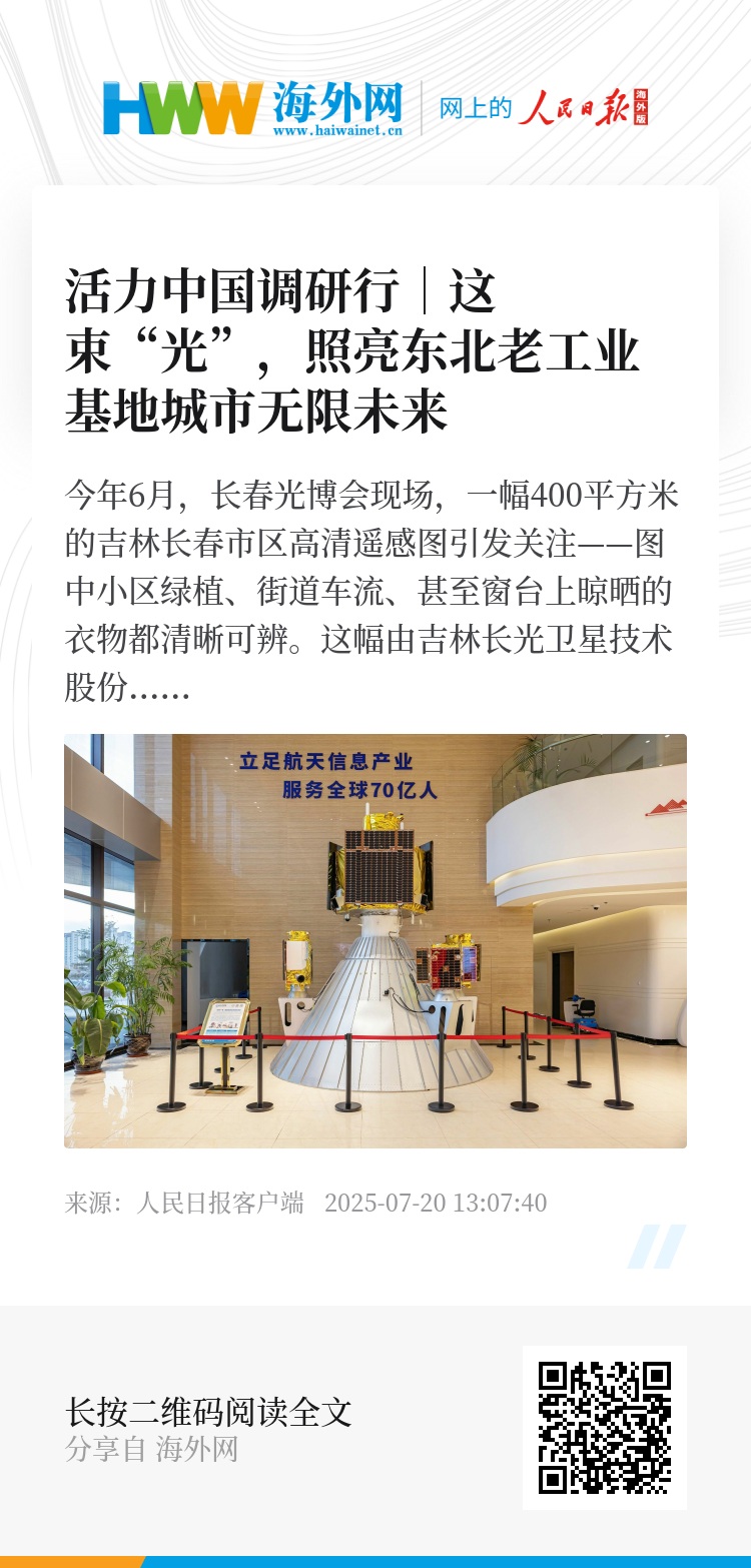 7月19日,“活力中国调研行”采访团在吉林长光卫星技术股份有限公司、长春经济技术开发区光电信息产业园采访,看长春如何追“光”逐“电”,用光电信息产业点亮高质量发展新赛道。