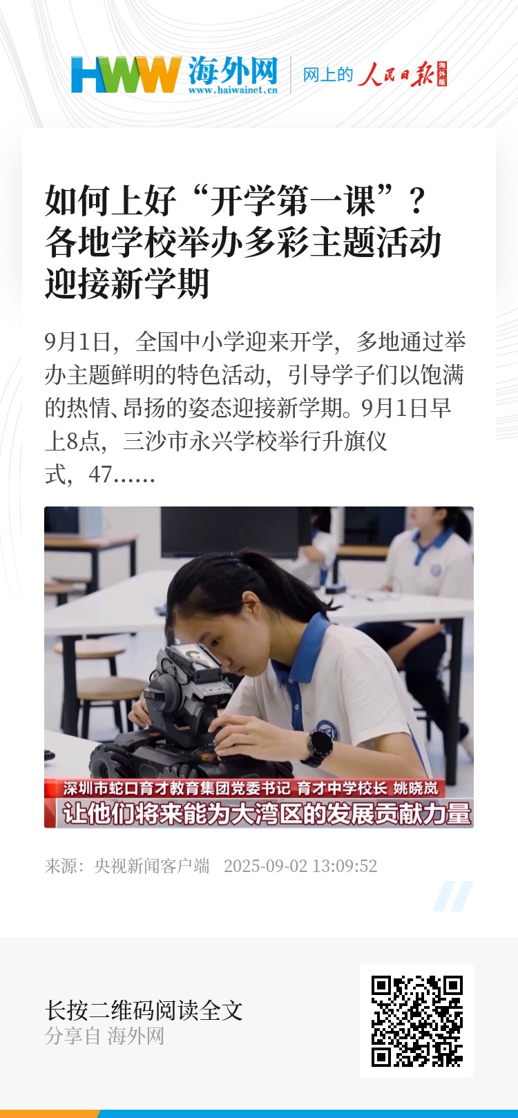 9月1日,全国中小学迎来开学,多地通过举办主题鲜明的特色活动,引导学子们以饱满的热情、昂扬的姿态迎接新学期。