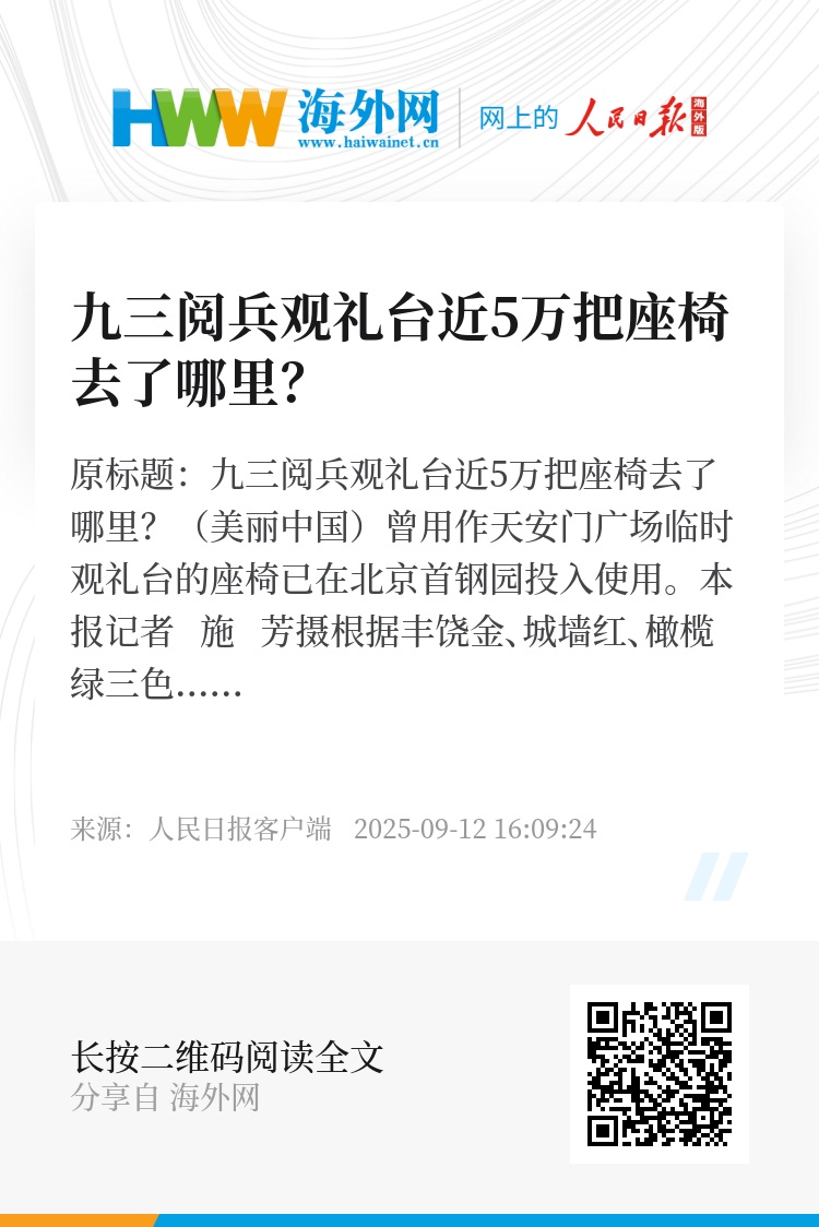 原标题:九三阅兵观礼台近5万把座椅去了哪里?(美丽中国)