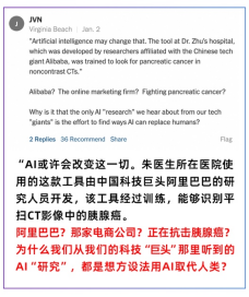 据悉,《纽约时报》报道的胰腺癌AI早筛项目是阿里巴巴达摩院联合多家机构开展的科研合作试点。除了宁波大学附属人民医院,试点机构还包括上海市胰腺疾病研究所、嘉兴市第二医院,以及当地数十家社区医院。不少美国网友在评论区期待引进该AI技术。