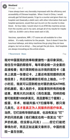 更有网友分享了在中国丝滑的就医经历,点赞“这才是为人民服务的医疗”。他一听说当场就能做核磁共振,还只要60美元,“差点从椅子上摔下来”。