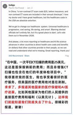 报道提到,该项“平扫CT+AI”的胰腺癌筛查费用仅需25美元,这更令美国网友震撼,纷纷吐槽起美国糟糕的医疗保障体系。在美国,一项普通的平扫CT高达数百美元,有人调侃,在美国医院,25美元只够付停车费。