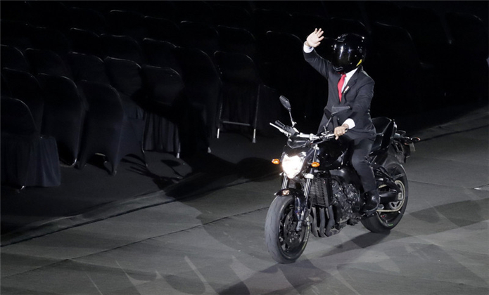 印度尼西亚总统佐科骑着摩托入场;“岩浆”倾泻而下点燃圣火,这些设计让本次亚运会开幕式创意十足。
