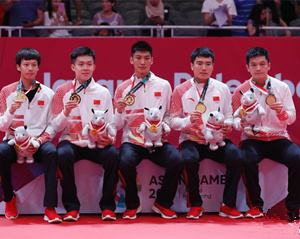 中国男乒实现亚运男团七连冠