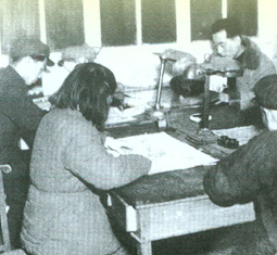 刚刚进入北平的人民日报校对科夜班工作场面