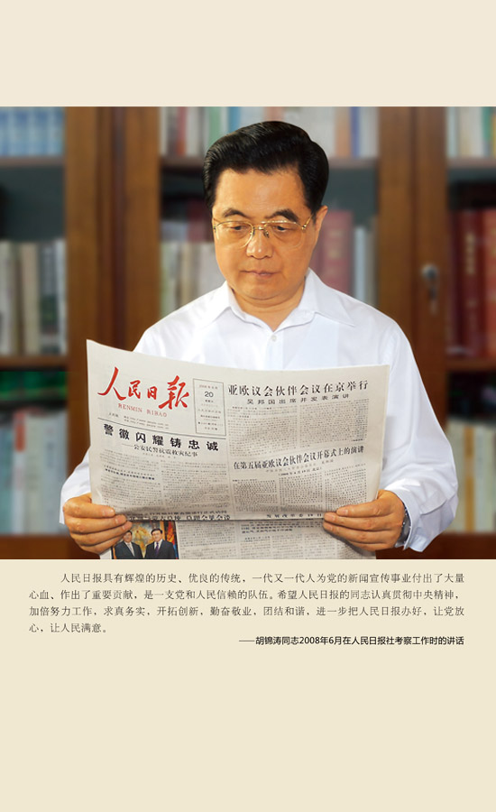 胡锦涛谈人民日报: 一支党和人民信赖的队伍