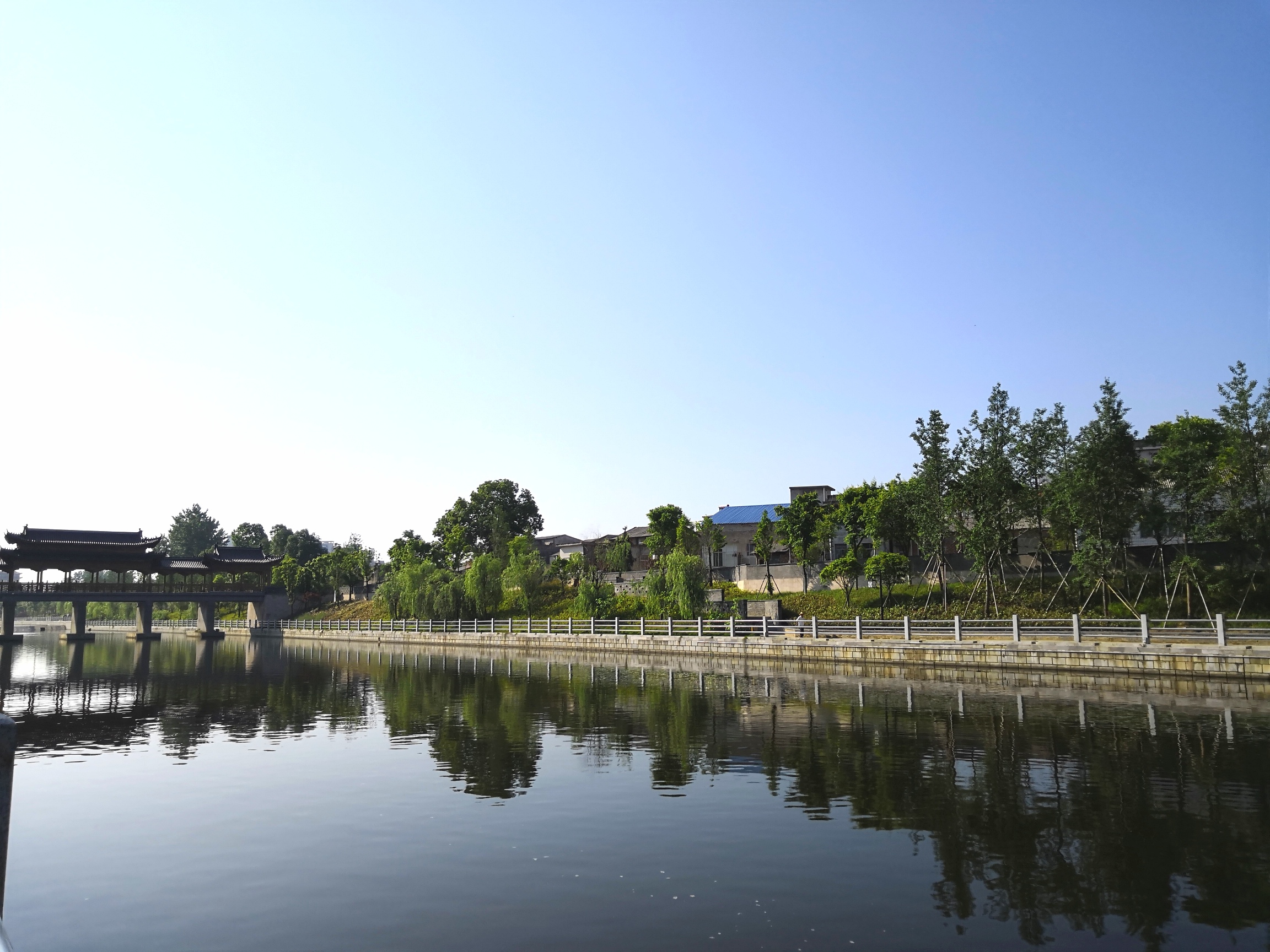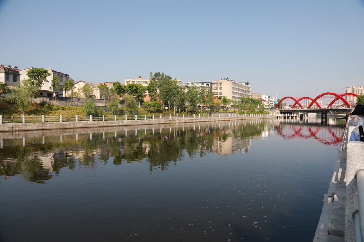 5月15日,“美丽中国长江行——共舞长江经济带·生态篇”湖北站媒体团来到长江沿线城市——黄冈市蕲春县。在蕲春县雷溪河,记者看到这里碧水蓝天、水光互应,河岸边绿树成荫、雕栏玉砌,一片秀美风光。