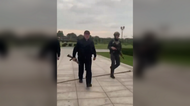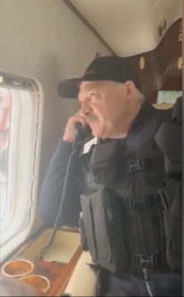 报道称,在直升机降落后,卢卡申科在一名年轻人的陪同下下机,这名年轻人酷似他15岁的儿子尼古拉。现场画面还显示,卢卡申科身穿作战背心,手持AK突击步枪现身。另一段视频显示,在几名持枪男子的伴随下,卢卡申科手握着枪朝官邸走去。