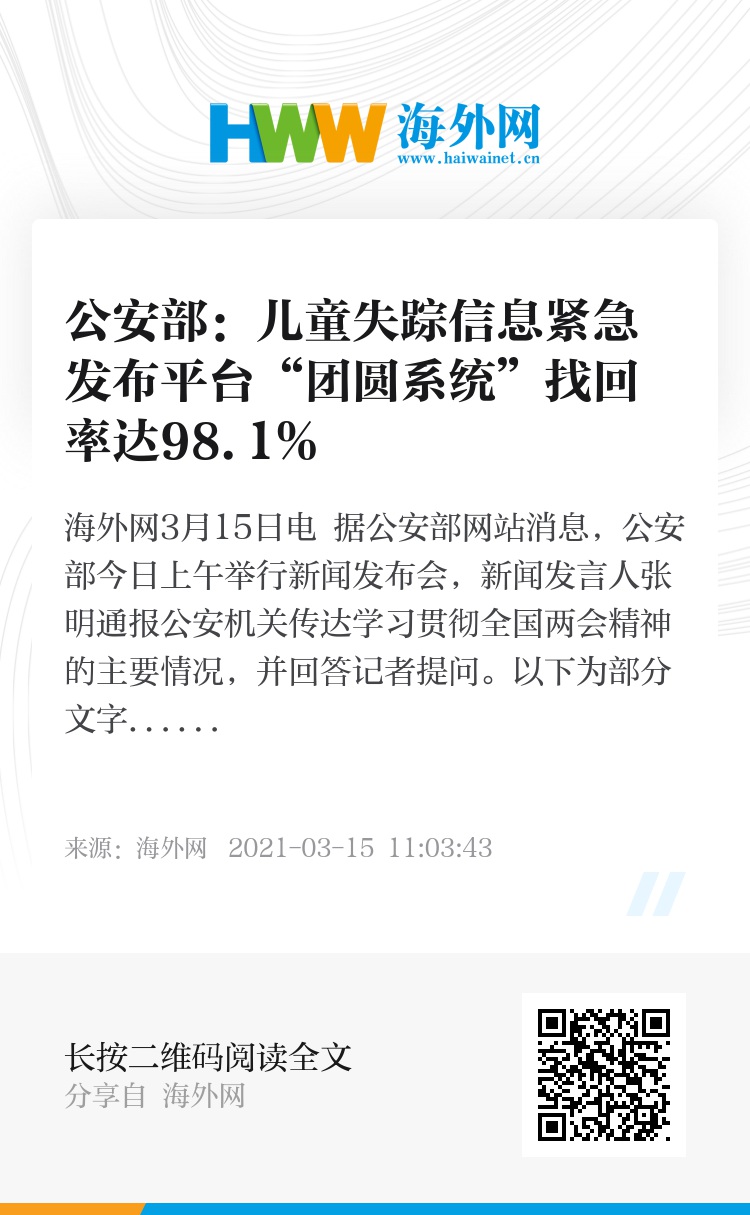 张明:孩子是父母的心头宝,是家庭的希望和未来。公安机关始终保持对拐卖犯罪的高压严打态势。自2009年以来,公安部持续组织各地深入开展“打拐”专项行动,建立了“一长三包”责任制,即县市区公安局长担任专案组长,全面负责案件侦办、查找解救儿童、安抚被害人家庭等相关工作,还建立了儿童失踪快速查找等机制。充分发挥科技的力量,公安部积极开展“互联网+反拐”工作,于2016年5月建成公安部儿童失踪信息紧急发布平台“团圆系统”,以失踪地为中心,通过25个移动应用和新媒体向一定范围内的群众推送失踪儿童信息,截至到2021年3月,“团圆系统”共发布了4722条儿童失踪信息,找回率达到98.1%。公安部2009年建立了全国打拐DNA数据库,成功比对找回了一批失踪被拐的儿童。总的来说,在全国公安机关和相关部门的共同努力下,拐卖儿童犯罪发案数大幅度下降,其中备受群众关注的盗抢儿童犯罪年发案数降至20起左右,而且这些案件基本都实现了快侦快破。