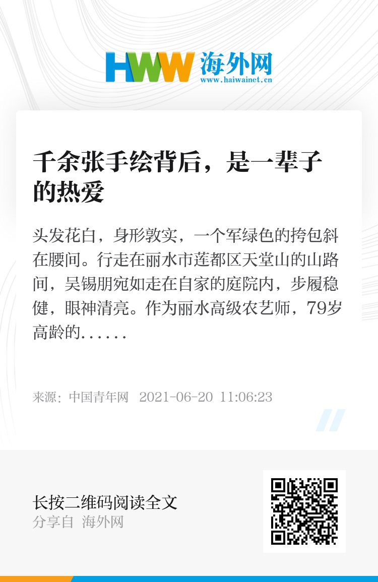 头发花白,身形敦实,一个军绿色的挎包斜在腰间。行走在丽水市莲都区天堂山的山路间,吴锡朋宛如走在自家的庭院内,步履稳健,眼神清亮。