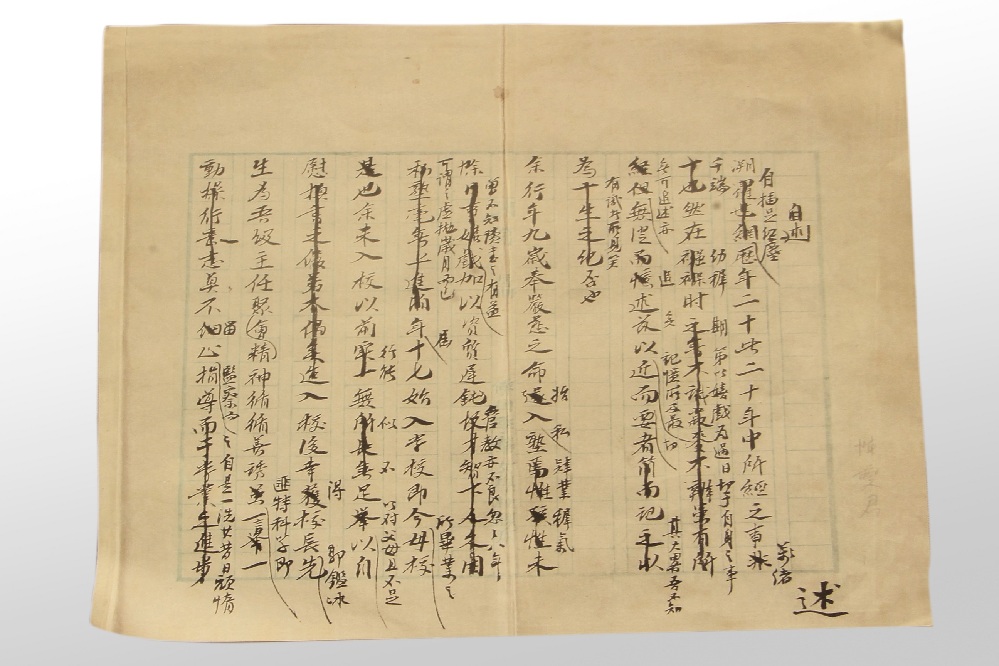 展出的这份《自述手稿》仅有四页,毛笔写成,笔迹秀逸而有力,陈铁军从幼年写起,写下了20年的人生经历。