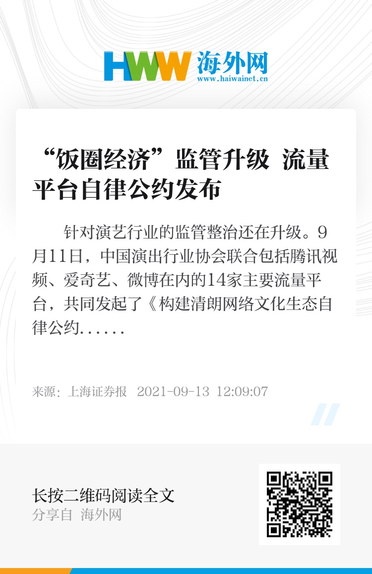 针对演艺行业的监管整治还在升级。9月11日,中国演出行业协会联合包括腾讯视频、爱奇艺、微博在内的14家主要流量平台,共同发起了《构建清朗网络文化生态自律公约》。