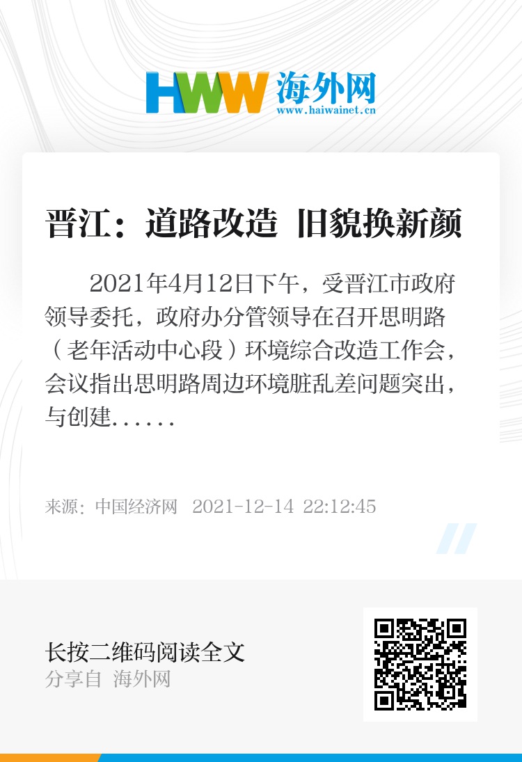2021年4月12日下午,受晋江市政府领导委托,政府办分管领导在召开思明路(老年活动中心段)环境综合改造工作会,会议指出思明路周边环境脏乱差问题突出,与创建全国文明城市标准差距较大,急需提升改造。