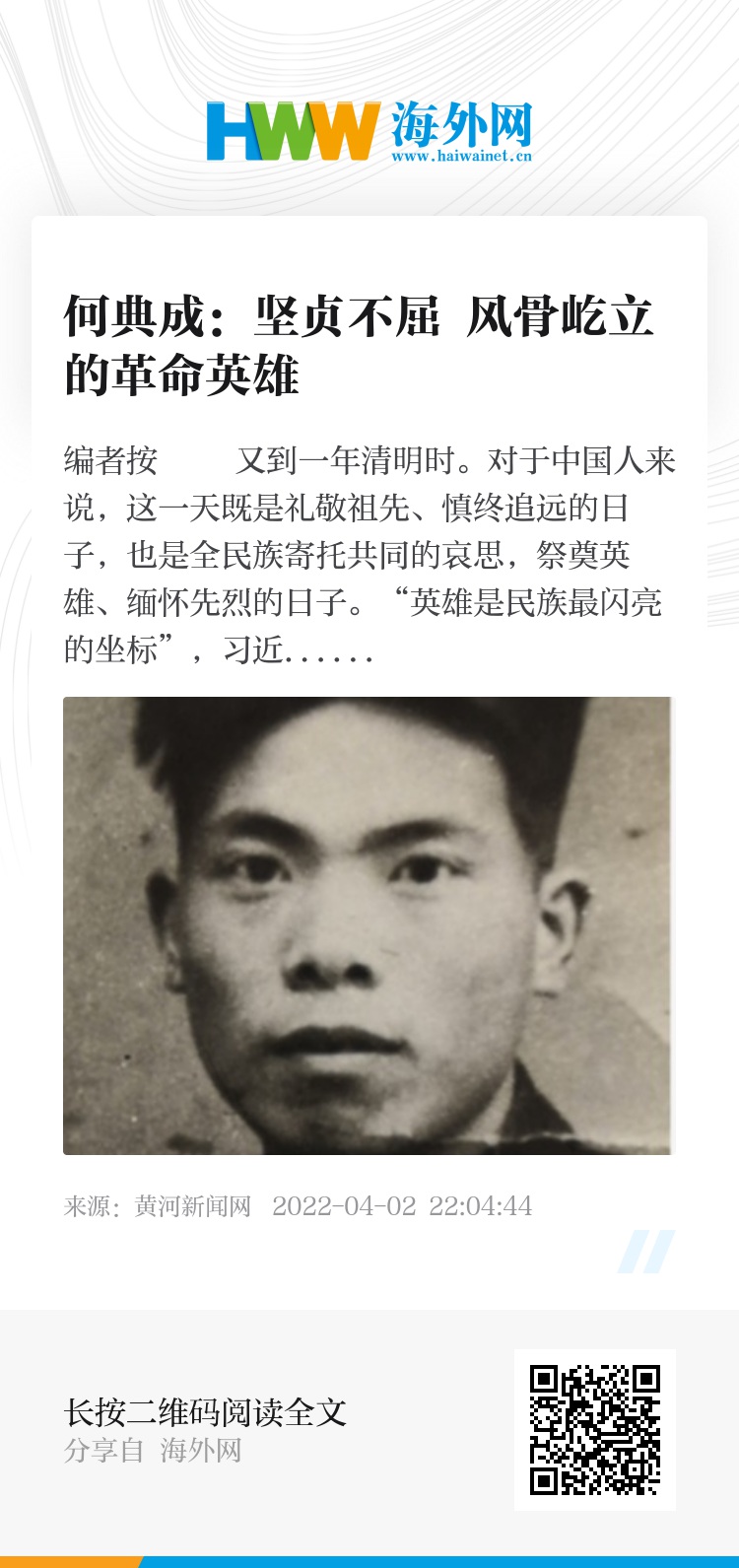 他们中,有年仅23岁的共产党员胡永康,经受一次次酷刑,在慷慨就义前愤怒地撕碎了敌人的审讯记录;有无数次穿越枪林弹雨,却牺牲在国民党反动派棍棒之下的董警吾、张雄;有年仅18岁的解放军排长赵宽虎,还有共赴国难的高源恒、芦庆珠夫妇……他们中,还有我的父亲——何典成。