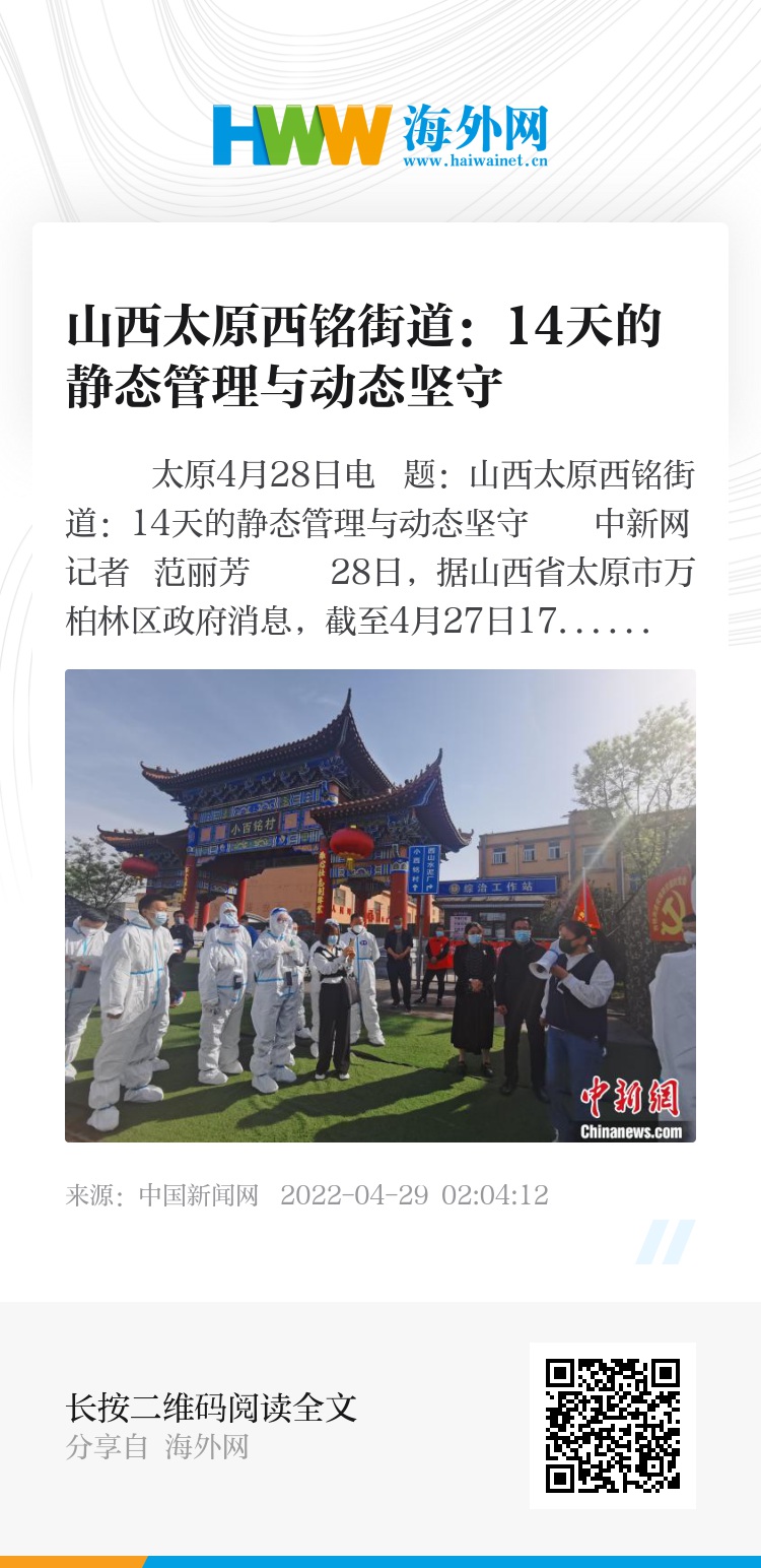 中新网太原4月28日电 题:山西太原西铭街道:14天的静态管理与动态坚守