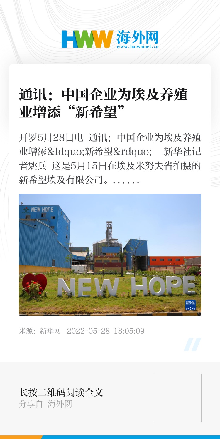 新华社开罗5月28日电 通讯:中国企业为埃及养殖业增添“新希望”