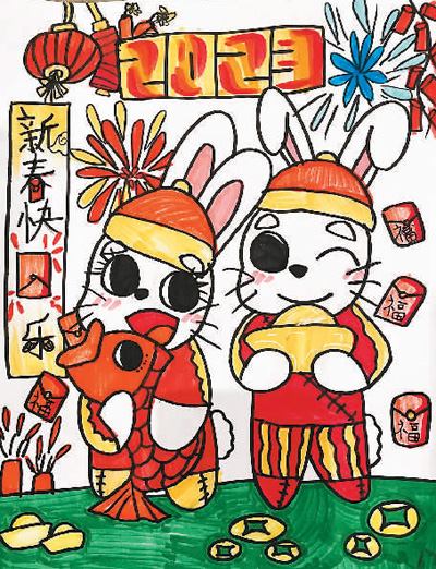 《中文“兔”飞猛进》梅兰妮作(九岁)(寄自荷兰)
