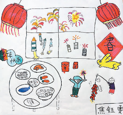《新年快乐》焦钰雯作(六岁)(寄自丹麦)