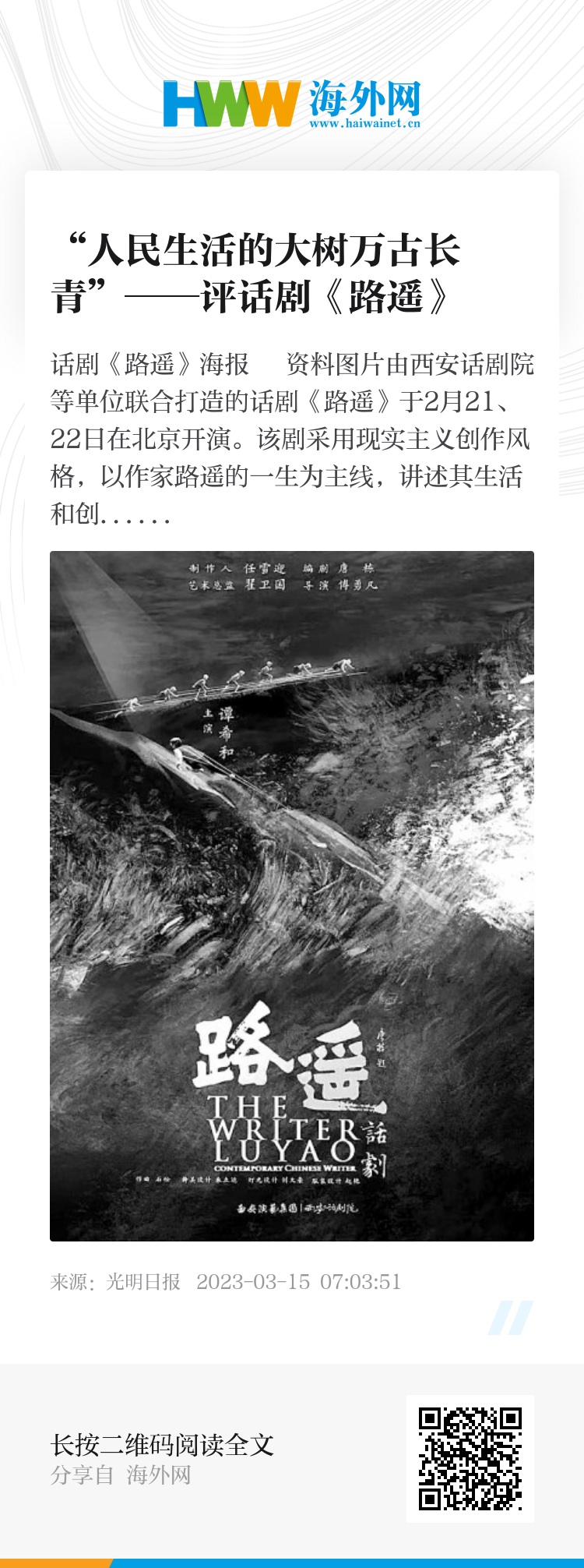 由西安话剧院等单位联合打造的话剧《路遥》于2月21、22日在北京开演。该剧采用现实主义创作风格,以作家路遥的一生为主线,讲述其生活和创作故事。回忆、现实、想象中的场景在全息投影技术的辅助下,实现多重空间交错。路遥生活中的困苦与希望、对创作的热爱、对家乡的眷恋与责任都展示在观众面前。