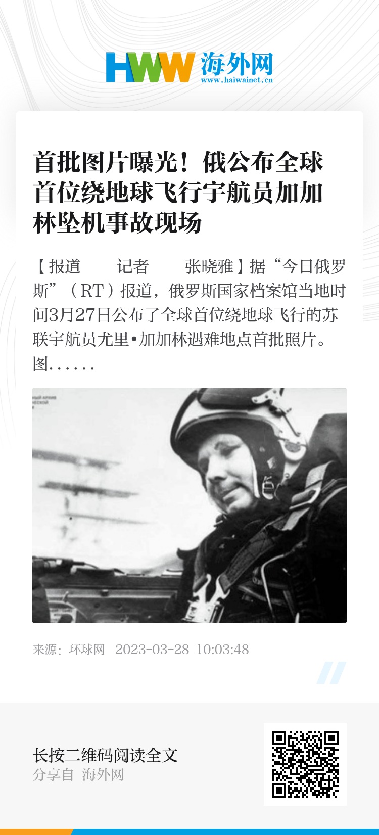 【环球网报道 记者 张晓雅】据“今日俄罗斯”(RT)报道,俄罗斯国家档案馆当地时间3月27日公布了全球首位绕地球飞行的苏联宇航员尤里•加加林遇难地点首批照片。
