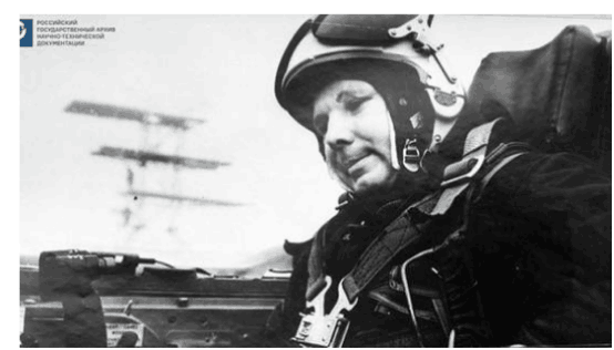图为加加林在米格-15喷气式战机的驾驶舱内 图自俄罗斯国家档案馆