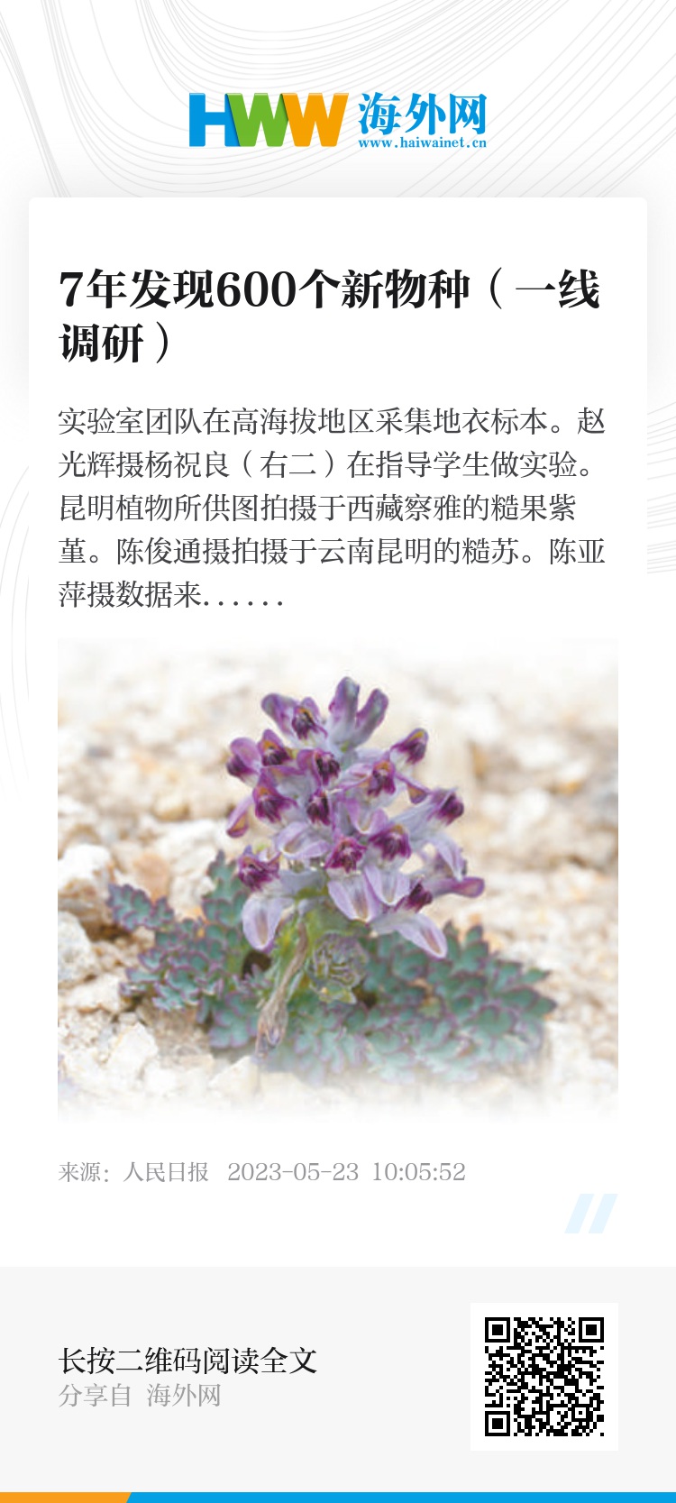 “以我主要研究的紫堇属植物为例,有的紫堇属物种分布较为广泛,在叶子形态、花色、花萼大小等方面有一些差异。但通过分子测序技术发现,这些个体仍属同一个物种。把形态特征与分子数据结合起来,我们才能更加全面地探究类群之间的亲缘关系。”陈俊通打了个比方:一个属好比一个大家族,血缘关系远点的或许差异大些,但关系近的物种就像亲姐妹,外形差异很小。“通过观察,可以大概分辨出它们是不是一家子;而分子技术则通过基因测序,更精准地确定它们是亲兄弟还是堂兄弟。”陈俊通说。