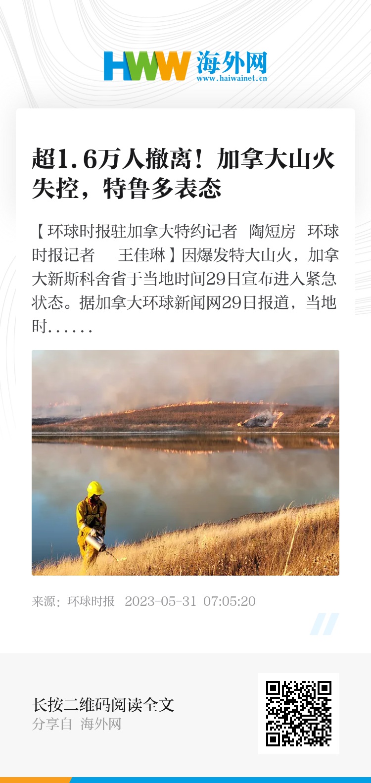 【环球时报驻加拿大特约记者 陶短房 环球时报记者 王佳琳】因爆发特大山火,加拿大新斯科舍省于当地时间29日宣布进入紧急状态。