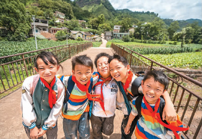 贵州省毕节市赫章县铁匠乡处卓村,孩子们走在上学路上。罗大富摄(人民图片)