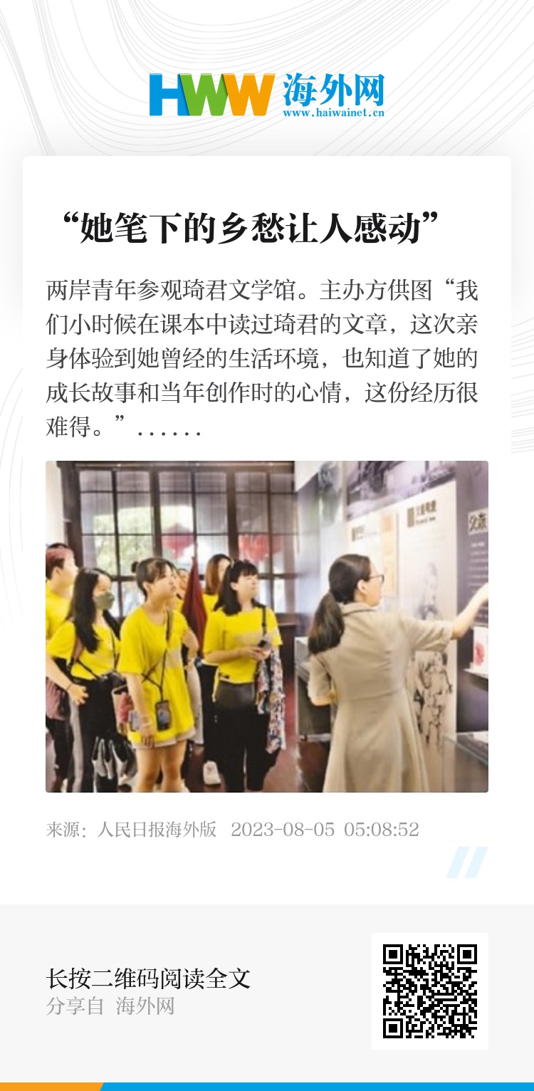 “我们小时候在课本中读过琦君的文章,这次亲身体验到她曾经的生活环境,也知道了她的成长故事和当年创作时的心情,这份经历很难得。”台湾中山医学大学学生邢琮翊说。