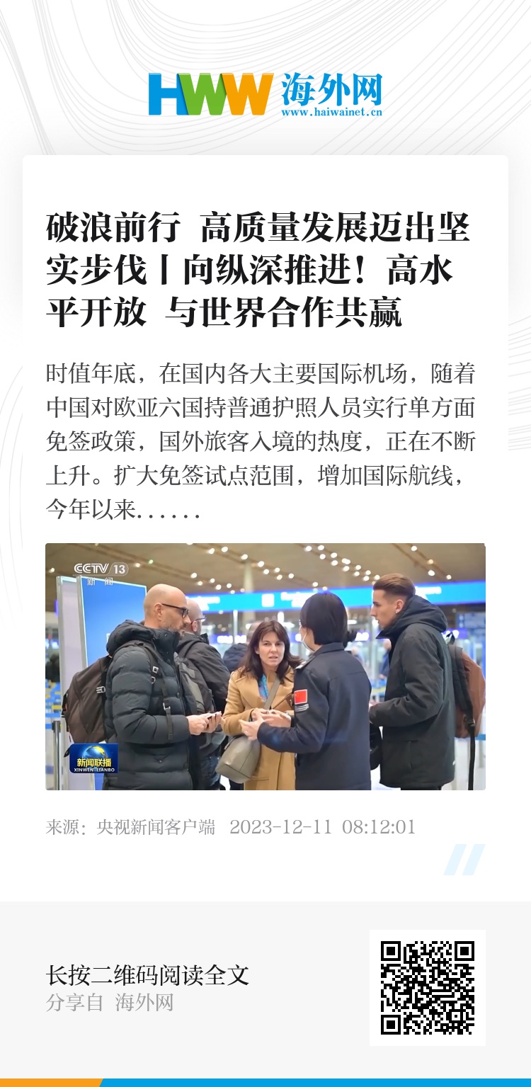 扩大免签试点范围,增加国际航线,今年以来,推动跨境人员流动的开放新举措接连推出,中国更加积极拥抱世界。