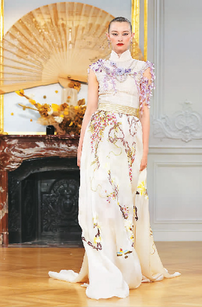 2023年9月,以“非遗传承国潮文化”为设计理念的“恭王府服饰秀”亮相法国巴黎中国文化中心,开启一场东方与西方、传统与时尚的对话。恭王府博物馆与著名服装设计师劳伦斯·许联名推出35套高定服装,以恭王府的传统文化元素为设计灵感,采用中西合璧的设计风格,在精致的云锦面料上辅以苗绣、苏绣等装饰,展现巧夺天工的传统技艺,让海外观众感受中国人的精雅生活美学。