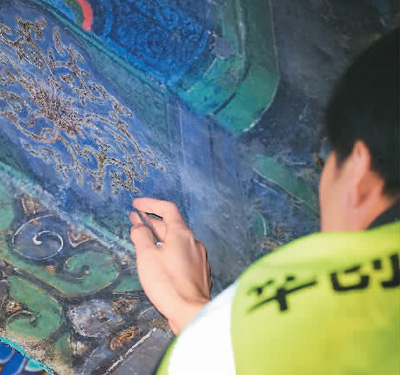 工作人员对恭王府建筑彩画进行数字化采集。恭王府博物馆供图