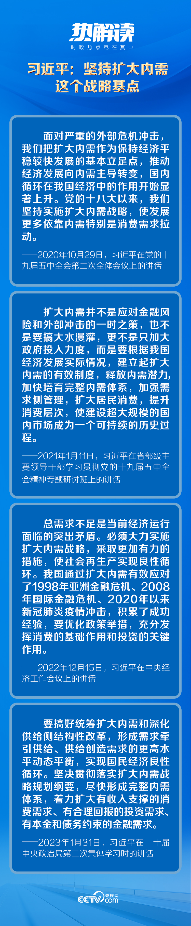 党的十八大以来,习近平总书记从我国经济运行的实际出发,对扩大内需作出了一系列重要论述,为实施扩大内需战略提供了科学指引。