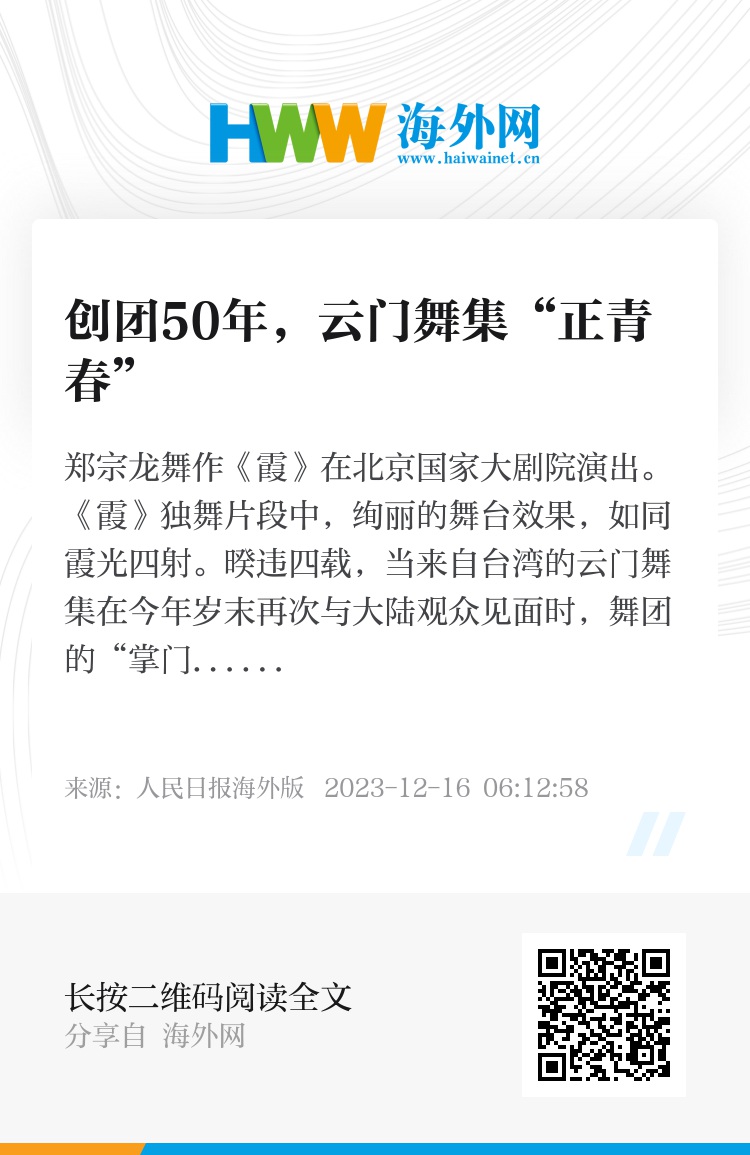 2019年,72岁的林怀民带领一手创立的云门舞集在大陆演出《白水》《秋水》,并宣布在担任舞团艺术总监46年后,正式退休告别舞台。次年,郑宗龙接手“比自己年龄还大的舞团”。时光流淌,云门舞集将去往何处?