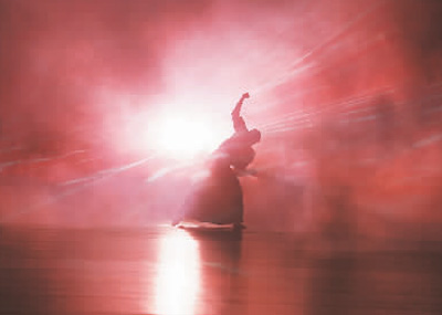 《霞》独舞片段中,绚丽的舞台效果,如同霞光四射。