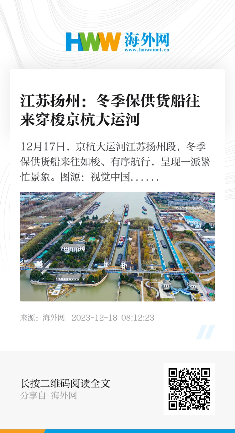32697940,.江苏扬州:冬季保供货船往来穿梭京杭大运河,.2023-12-18 08:39:23,.204441,.张荣耀、姚凯红