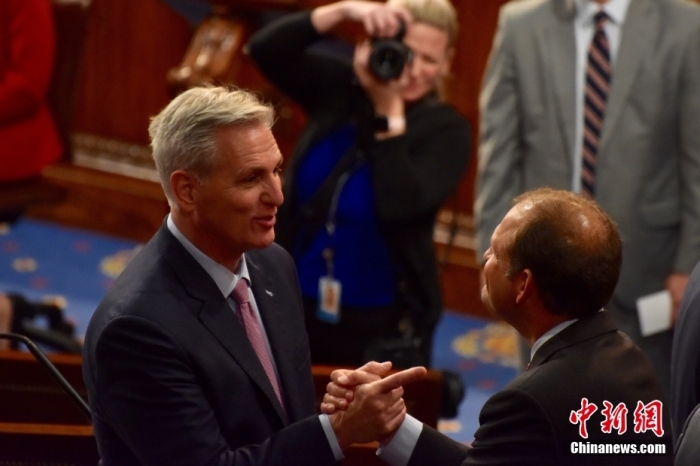 当地时间2023年1月7日凌晨,经过十五轮投票后,美国国会共和党议员麦卡锡当选国会众议院议长。 中新社记者 沙晗汀 摄