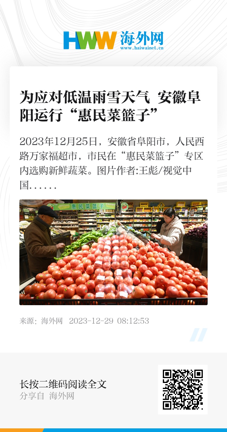 32701592,.为应对低温雨雪天气 安徽阜阳运行“惠民菜篮子”,.2023-12-29 08:33:53,.204372,.刘素素、夏丽娟