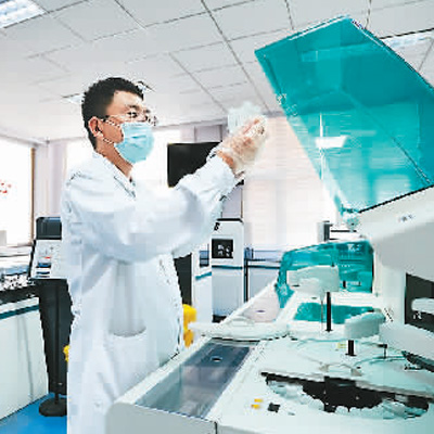 河北省滦州市以医共体建设为抓手,促进优质医疗资源下沉基层,逐步实现下级检查、上级诊断,检查检验结果互认,让“患者少跑腿,数据多跑路”。图为7月21日,滦州市人民医院医生在医共体检验中心检测乡镇医院送来的检测样本。新华社记者 牟宇 摄