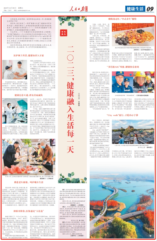 与此同时,一个个与健康有关的话题频频登上热搜榜: “中药版”酸梅汤让人们认识到传统中医药的蓬勃生命力;“多巴胺穿搭”用明亮的色彩搭配给大家带来快乐;City walk(城市漫步)让年轻人在运动中发现城市的魅力……一个个健康热点的背后,折射出人们对健康的重视度与日俱增,反映出公众对健康生活方式的热爱。