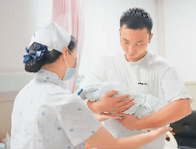 贵州省黔东南苗族侗族自治州岑巩县妇幼保健院常态化开展健康宣传活动,在产科住院病区进行新生儿常见生理现象及护理、产后术后健康指导等科普,培养科学健康的生活方式及正确的就医理念。图为9月13日,岑巩县妇幼保健院护士为新生儿家长讲授带婴儿技巧。胡国鑫 摄(人民视觉)