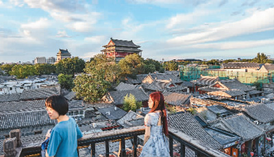 6月10日,人们在北京什刹海附近咖啡厅露台欣赏风景。新华社记者 陈钟昊 摄